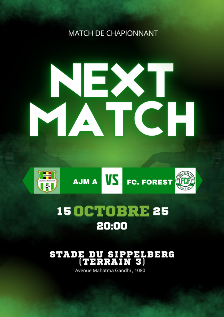 Après des prestations encourageantes et une équipe qui monte en puissance semaine après semaine, nos joueurs poursuivent leur aventure ce mercredi 15 octobre 2025 à 20h, à domicile, au Cmpl. Stade du Sippelberg (Terrain 2), Avenue Mahatma Gandhi, 1080 Molenbeek-Saint-Jean.