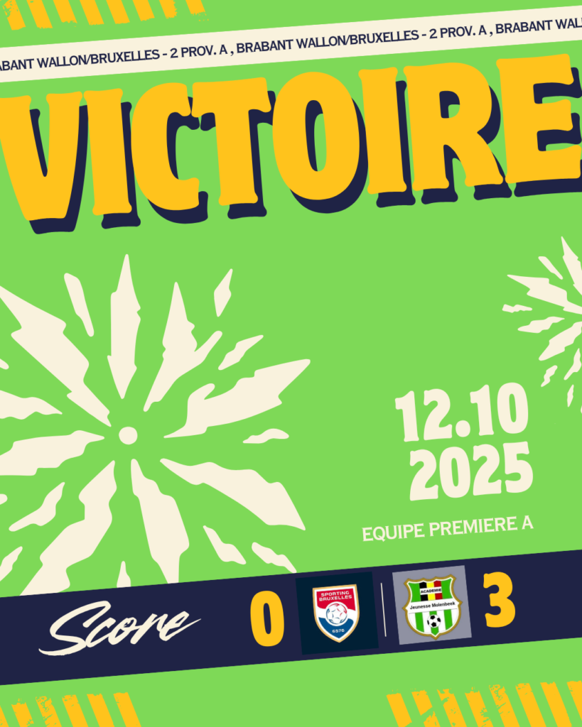 Ce dimanche, notre équipe première A a retrouvé le chemin de la victoire sur la pelouse du Sporting Bruxelles B : 0 – 3 au terme d’une rencontre maîtrisée.